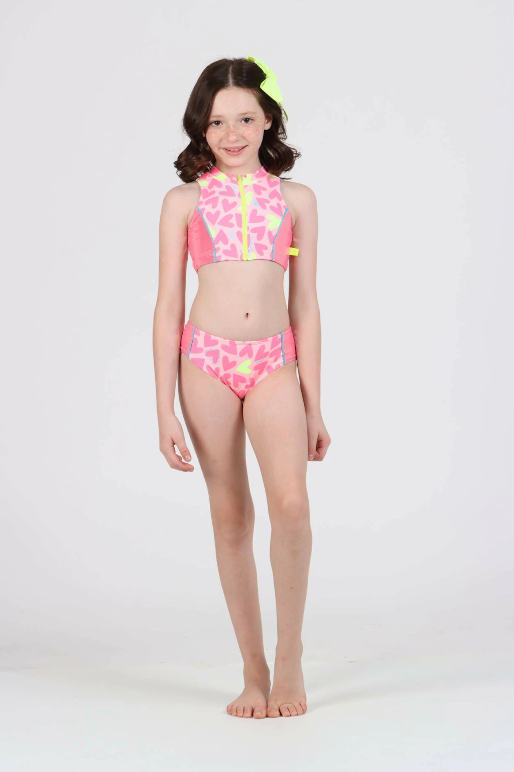 O Biquíni Cropped Kids Cecília Estampa Love da Siri é feito para acompanhar as pequenas nos momentos mais divertidos do verão. Com estampa vibrante e modelagem moderna, ele une liberdade de movimento e um toque de doçura para curtir praia, piscina ou parque com muito charme.