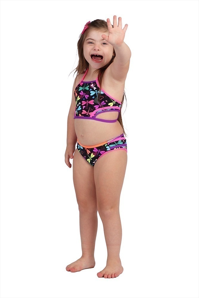 Estampa Colorida de Libélulas: O destaque deste biquíni é a sua estampa colorida de libélulas, que cria um visual encantador e inspirador. As libélulas são representadas de forma alegre e vibrante, adicionando um toque de natureza e fantasia à peça. A estampa é especialmente cativante para as crianças que adoram a vida ao ar livre e a fauna.