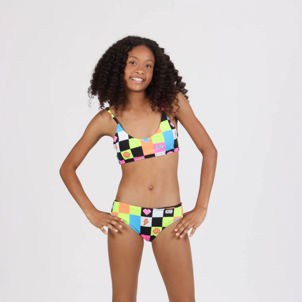 O Biquíni Faixinha Teen Janaina Estampa Emoji é a tradução perfeita do verão divertido e confiante — um look alegre, moderno e confortável para teens que amam brilhar com o estilo autêntico da Siri.