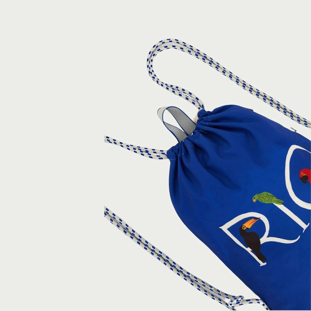 Estampa Rio Azul exclusiva, com cores vivas e estilo tropical