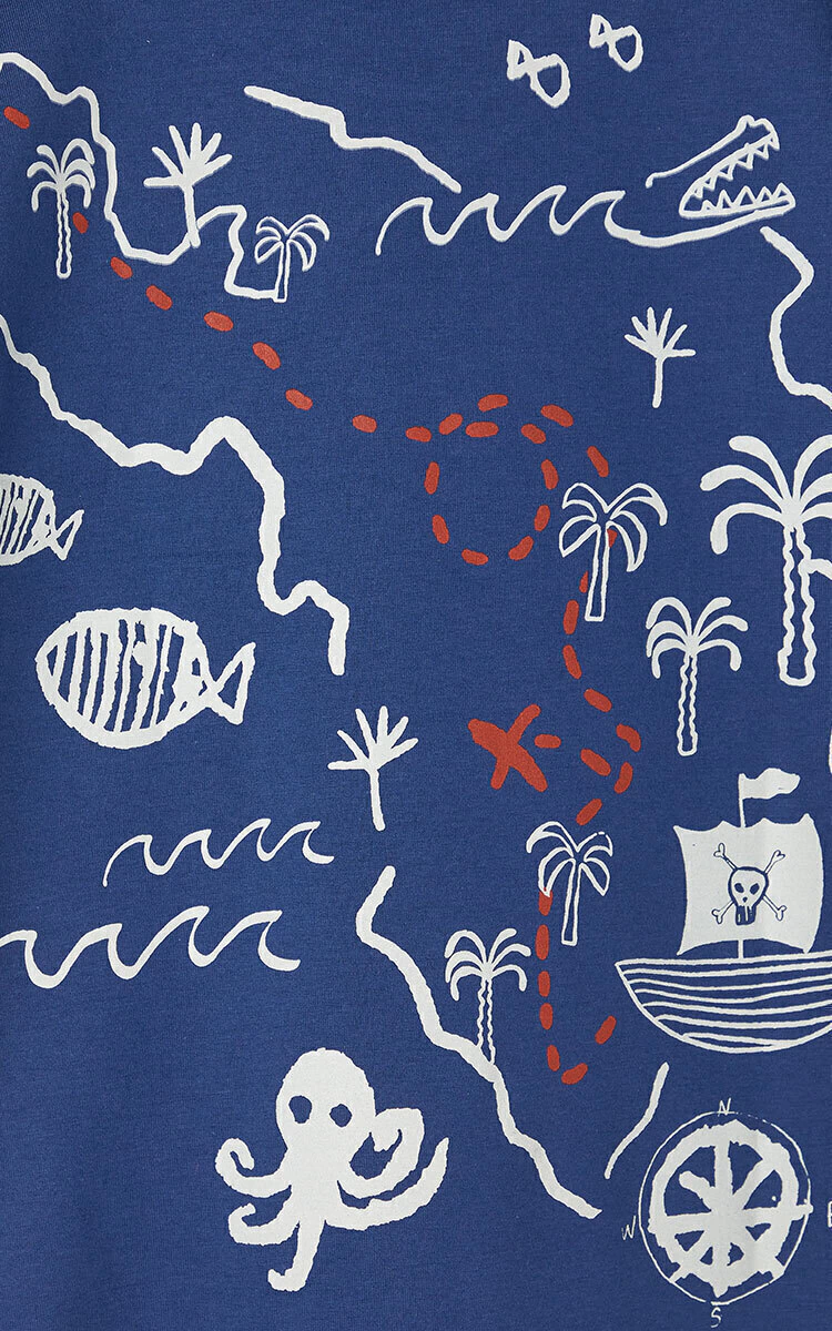 Estampa exclusiva Caça ao Tesouro, rica em detalhes lúdicos