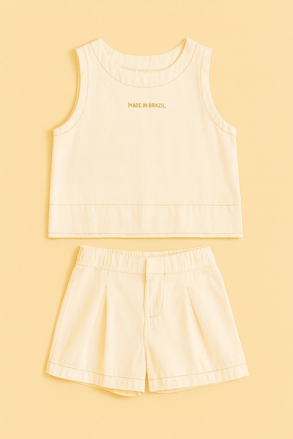 Com design moderno e delicado, o conjunto é ideal para passeios, encontros em família ou dias de diversão, garantindo conforto e estilo em qualquer situação.