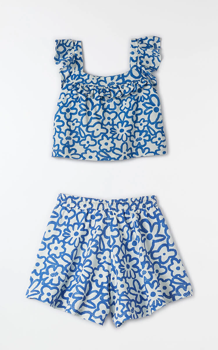 A calça/short do conjunto também combina com camisetas básicas