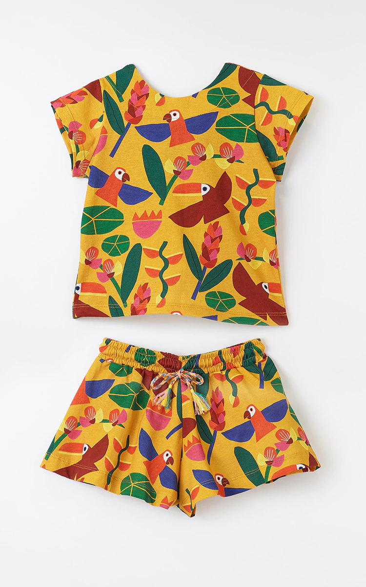 Com blusa e parte inferior coordenadas (short ou calça, conforme o modelo da coleção), o conjunto oferece um look pronto e harmonioso, que combina praticidade com beleza.