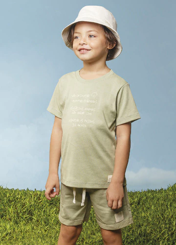 Cor Verde Vibrante: O verde deste conjunto adiciona um toque de frescor e energia ao guarda-roupa infantil, perfeito para todas as estações do ano.