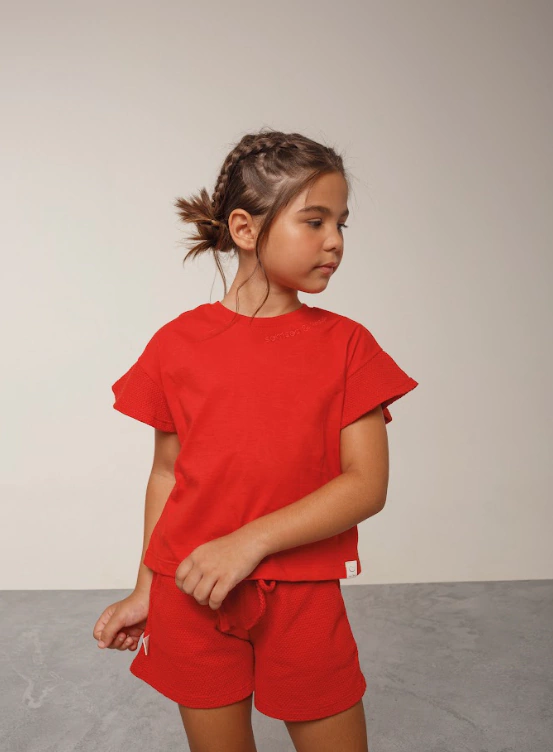 O Conjunto Meia Malha e Favo Vermelho personifica a visão da Bugbee em oferecer peças que combinam moda e conforto. Confeccionado com meia malha macia e delicada, este conjunto envolve as crianças em conforto enquanto adiciona um toque sutil de textura. A tonalidade vermelha vibrante é um tributo à energia das crianças, enquanto o detalhe de favo traz um charme adicional à peça.