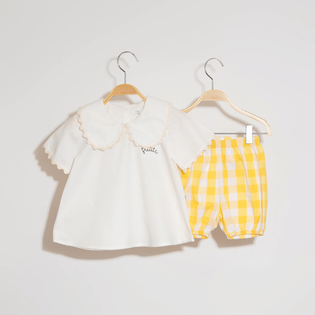 CONJUNTO SHORTS VICHY FRUIT AMARELO - KEKO