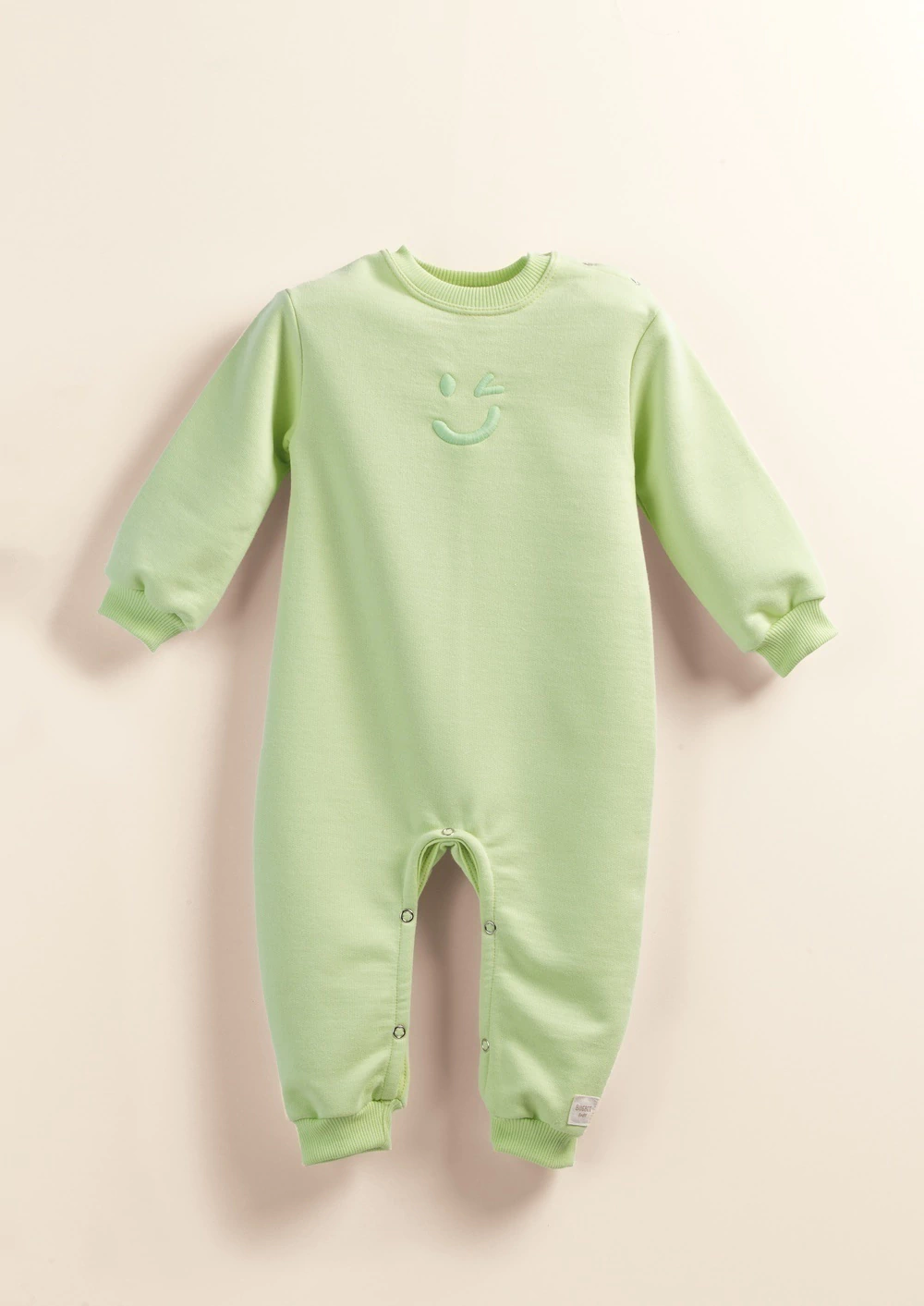 O destaque deste macacão é o tom Cool Matcha, um verde suave e elegante que adiciona um toque de frescor ao visual. Além disso, o tecido de moletom felpado proporciona isolamento térmico eficaz, mantendo o bebê aquecido e confortável em todas as estações.