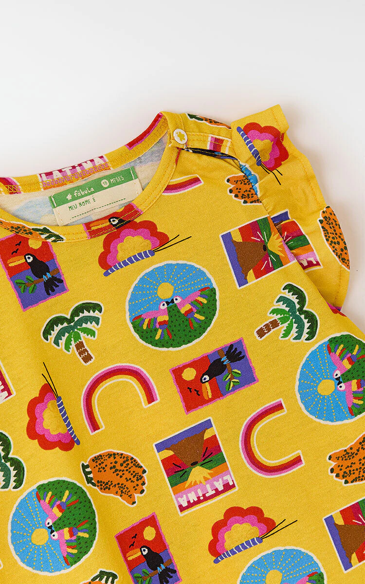 O Macaquinho Bebê Malha Postales da Fábula é uma peça leve, prática e cheia de significado. Inspirado em paisagens tropicais e memórias de viagem, ele traz uma estampa exclusiva que mistura natureza, cultura e cor — tudo isso em um macaquinho feito para garantir o conforto dos pequenos em qualquer momento do dia. Com tecido em malha macia e modelagem soltinha, é ideal para viver a infância com liberdade e alegria.