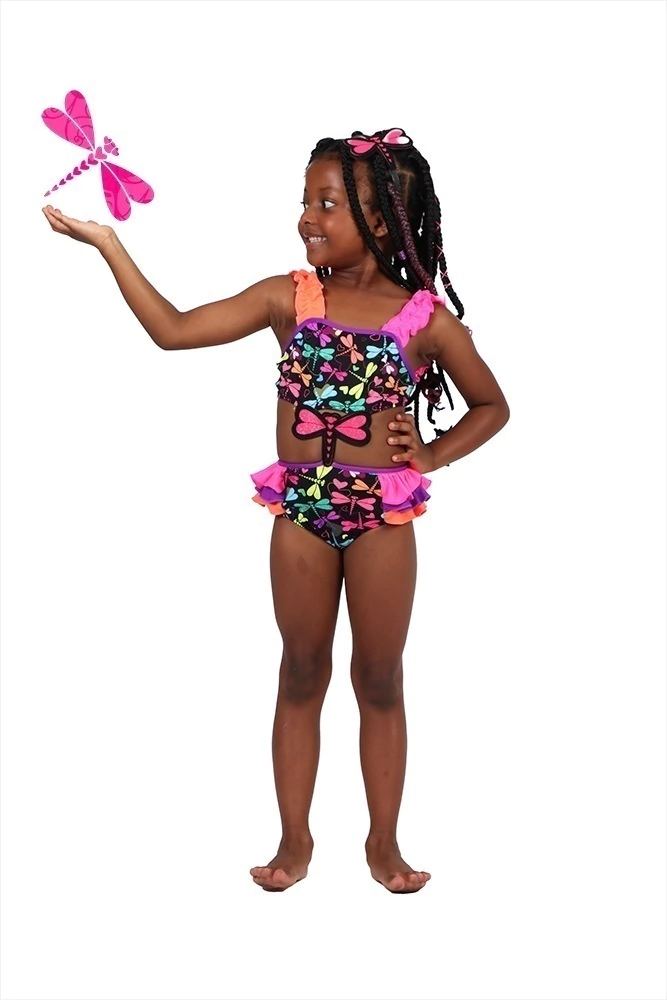 Um dos pontos mais distintivos deste maiô é o aplique de libélula localizado estrategicamente na barriga. Esse recorte traz uma dimensão única à peça, acrescentando um elemento lúdico e delicado que certamente chamará a atenção. As crianças vão adorar a combinação de cores e a criatividade do design.