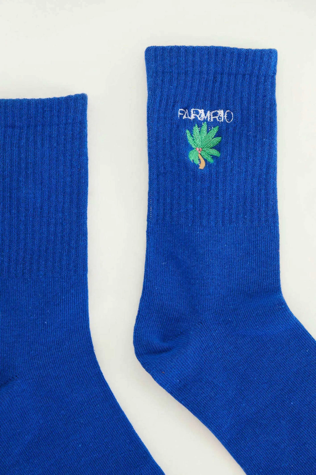 A Meia Azul Coco Farm Rio da Farm é um acessório que traduz frescor e autenticidade. Com tom azul vibrante e estampa tropical de coco, traz brasilidade e alegria para o visual, além de proporcionar conforto em cada passo.