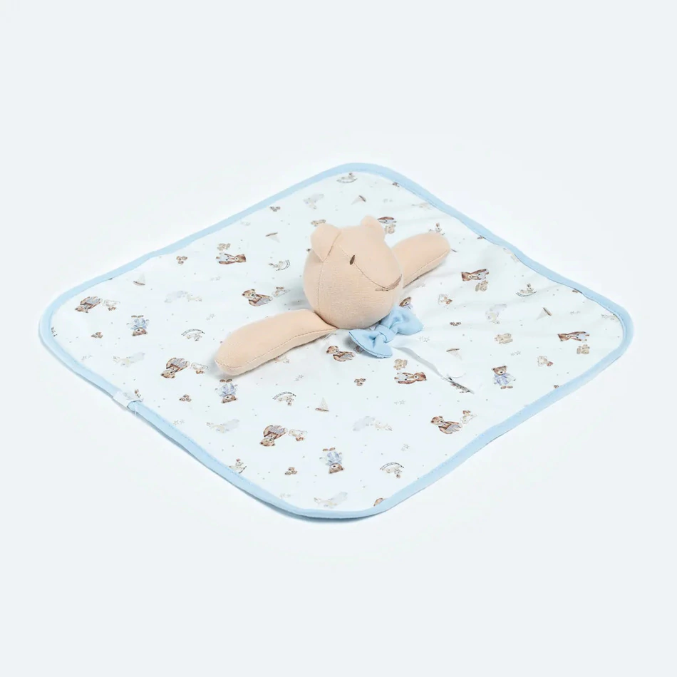 Feita com tecido macio e leve, a naninha oferece uma sensação acolhedora que ajuda o bebê a se sentir seguro. Ideal para momentos de sono, relaxamento ou adaptação a novos ambientes, ela se torna um objeto de apego afetivo.