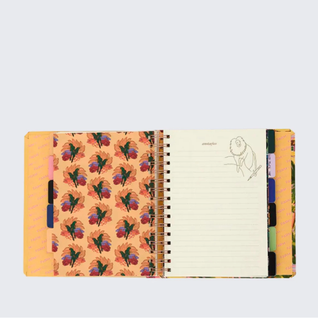 • Capa rígida com estampa exclusiva Farm, repleta de cores e detalhes tropicais