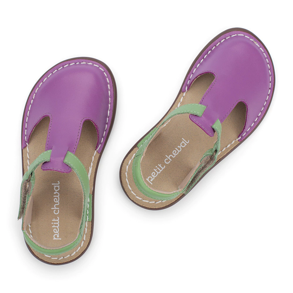 Produzida em couro macio por dentro e por fora, a sandália Balanço da Petit Cheval, apesar de ter bico fechado, absorve a transpiração e mantém os pés frescos durante todo o tempo de uso. Possui palmilha plana em couro e uma modelagem simples.