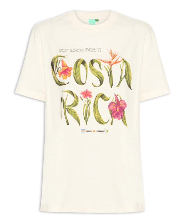 Estampa frontal com frase “Soy Costa Rica” e arte exclusiva FARM