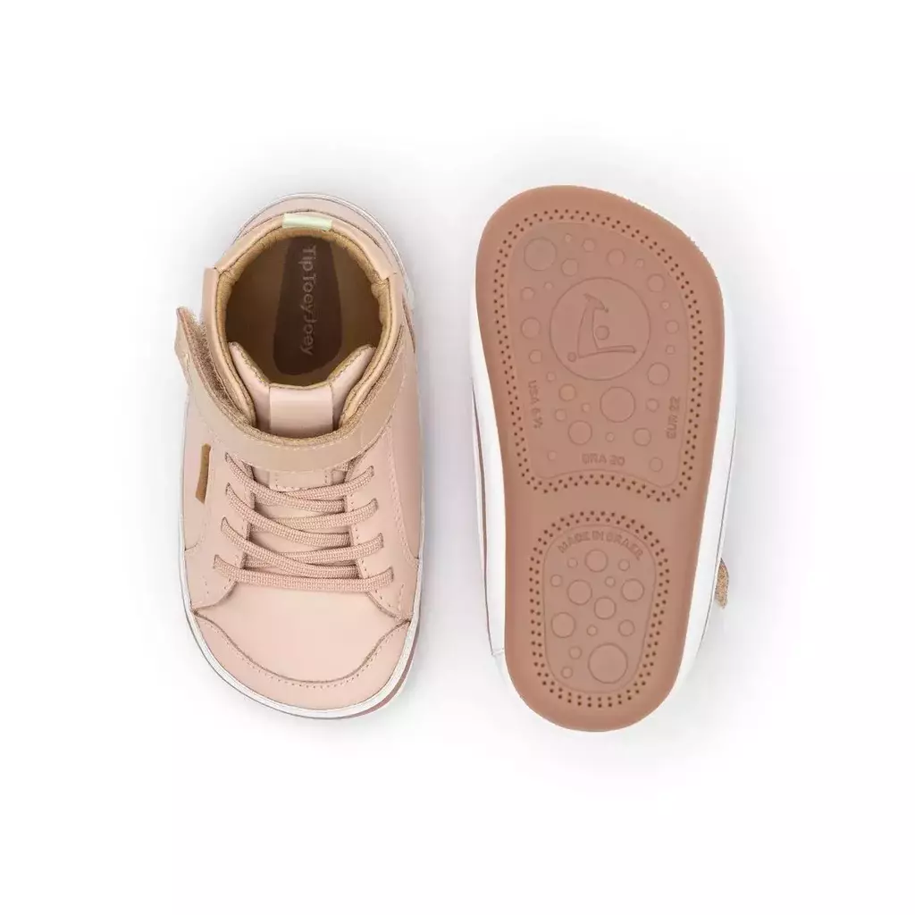 O Tênis Infantil Cano Alto Andar e Equilibrar Alley da Tip Toey Joey é perfeito para acompanhar os primeiros passos das crianças com segurança, liberdade e muito estilo. Com design moderno em rosa claro com detalhes perolados, ele une conforto anatômico, materiais naturais e tecnologia pensada para o desenvolvimento saudável dos pezinhos.