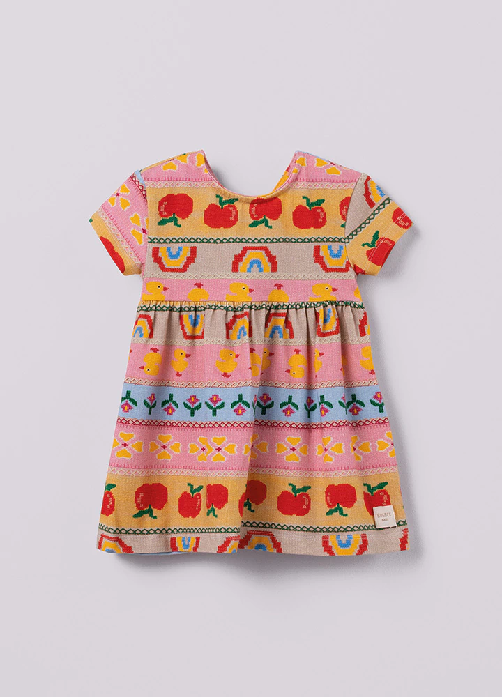 O Vestido Cotton Listrado Sítio para bebê da marca Bugbee é uma peça adorável e prática, ideal para os pequenos.