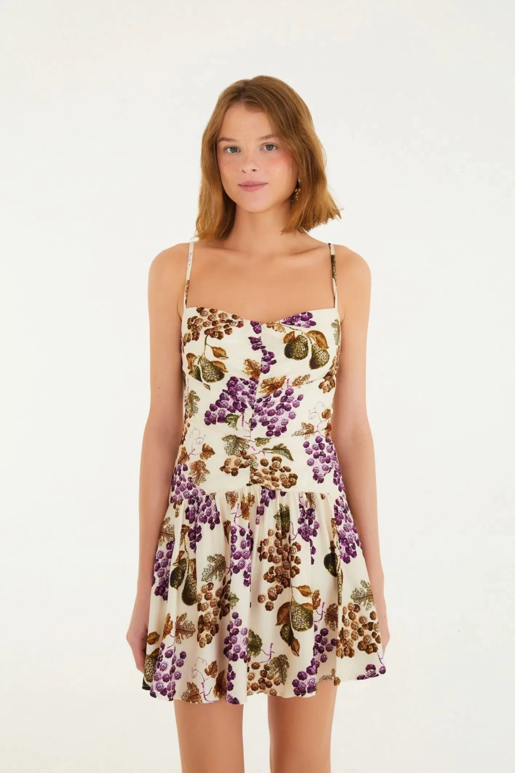Estampa Romance de Uva: exclusiva da Farm, com cores vivas e toque artesanal