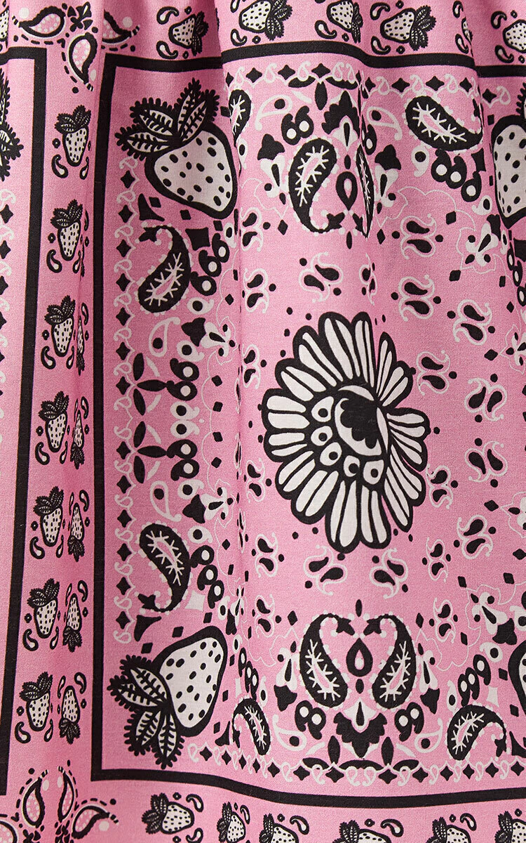Estampa exclusiva Morango Bandana, que mistura o frescor do fruto com a pegada boho da bandana