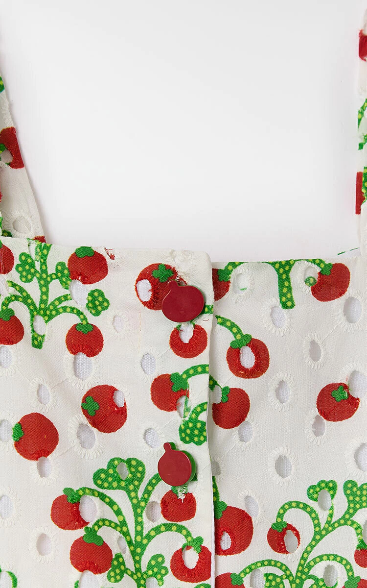 Estampa divertida Tomatito, trazendo cores vibrantes e lúdicas
